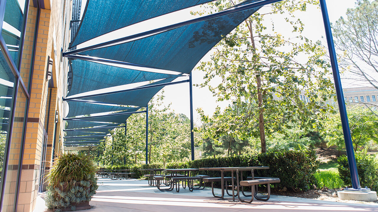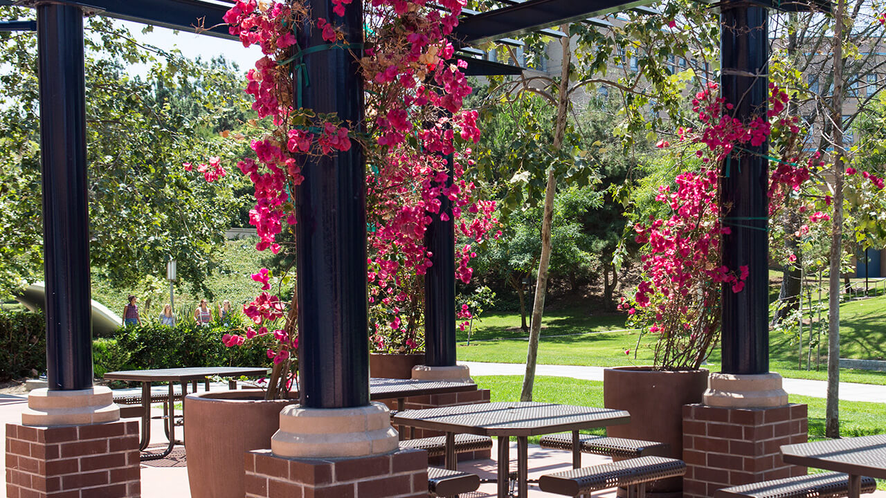 The Anteater Courtyard at the bottom of the Anteater Steps.